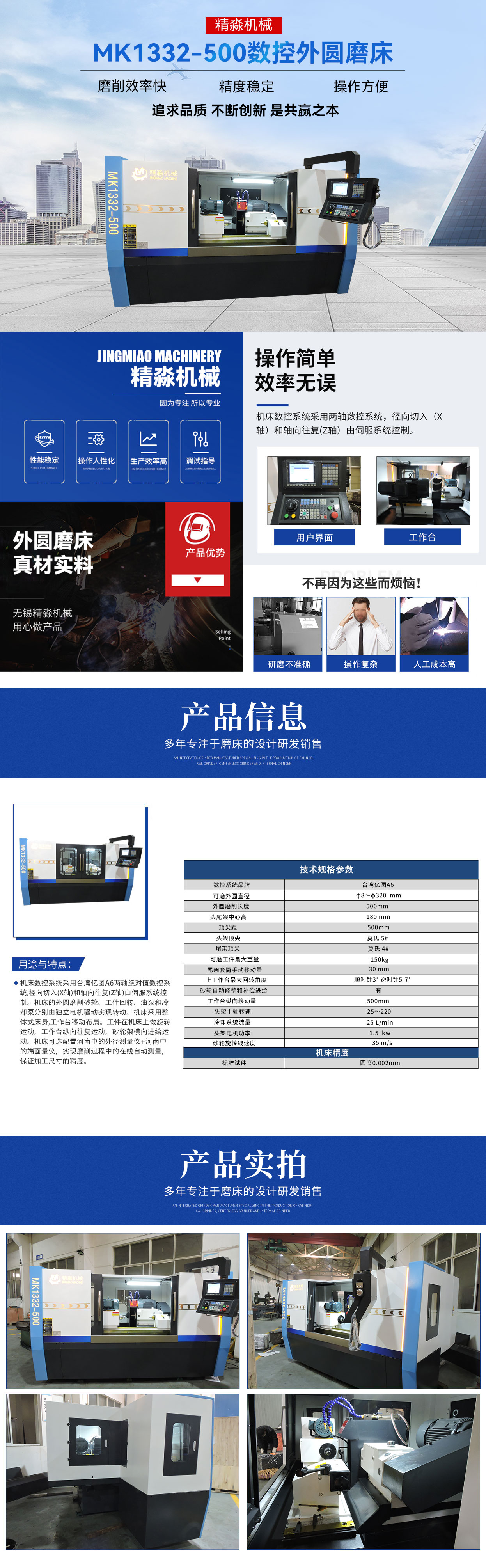 歡迎您訪問無錫市精淼機(jī)械科技有限公司官網(wǎng)!本公司主要產(chǎn)品有:磨床,外圓磨床,萬能外圓磨床,數(shù)控外圓磨床,數(shù)控端面外圓磨床,數(shù)控復(fù)合磨床,專機(jī)定制,高精度外圓磨床 !